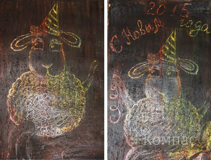 Широкой кистью, наносят на поверхность слой туши или черной гуаши. Для того, чтобы краска не растекалась по воску, кисточку предварительно окунают в мыльный раствор. Можно в краску добавить несколько капель шампуня. Иногда приходится наносить краску в несколько приемов — просушить первый слой, а затем нанести второй.